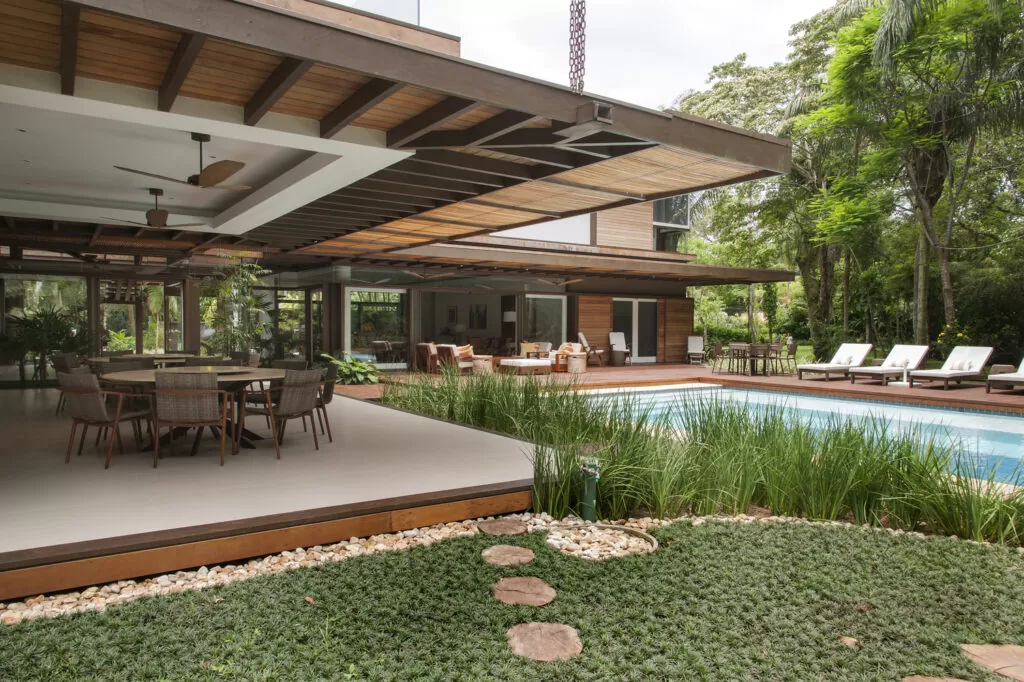 Este estilo conta com espaços amplos, varandas, beirais generosos e telhados inclinados. Combina com o clima de boa parte do nosso país, se adequando principalmente a ambientes quentes e tropicais. É um estilo charmoso e acolhedor.