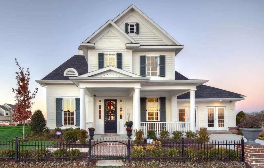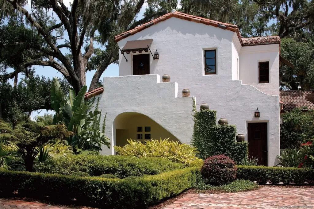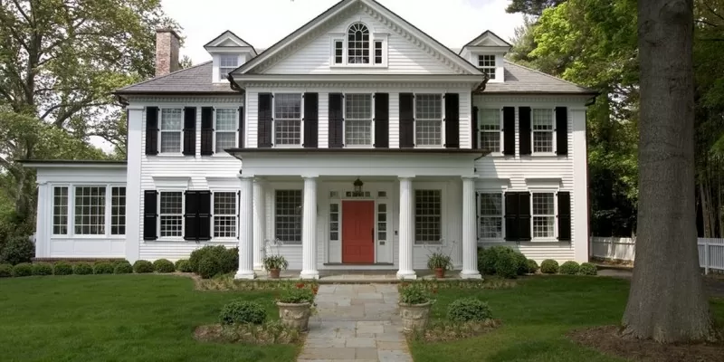 Na arquitetura Americana, as casas geralmente possuem fachadas brancas, colunas expostas e terraços. Cores claras como branco, creme e cinza compõem a paleta da casa. Essas casas costumam ter muros baixos e paisagismo no projeto. Por uma questão de segurança é recomendável à execução do projeto em cidades de interior ou no caso de cidades maiores em condomínios fechados.