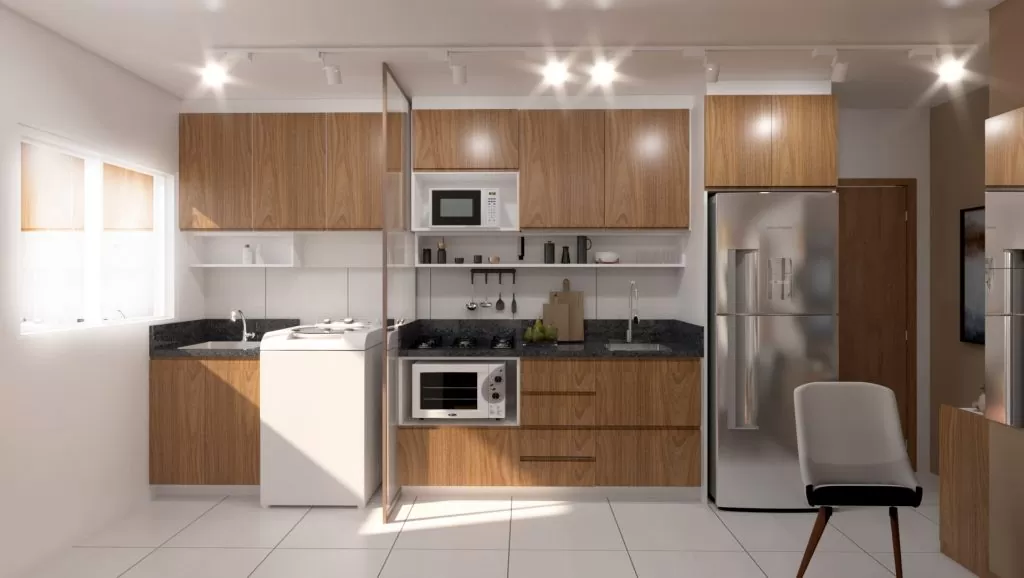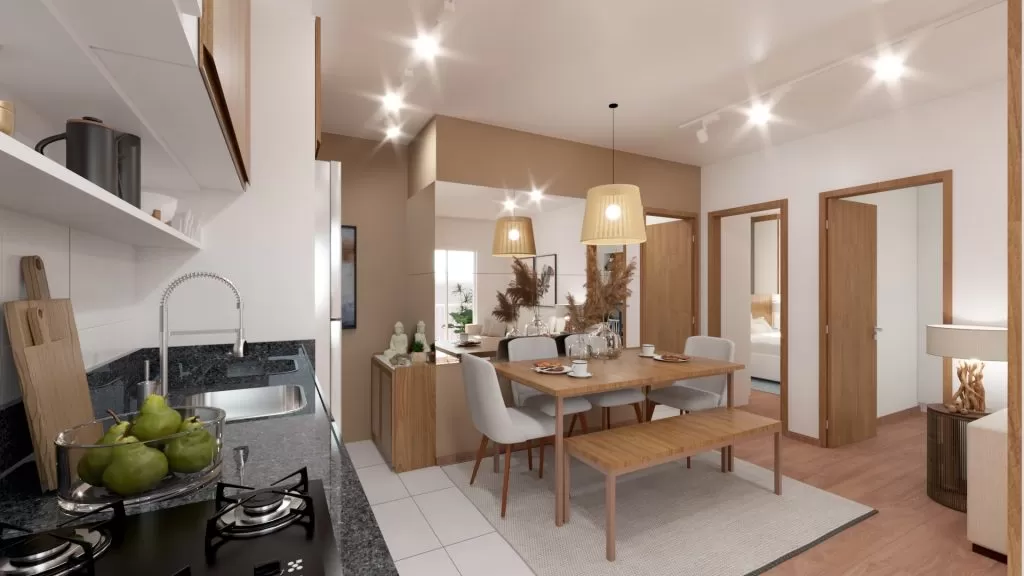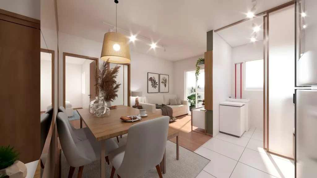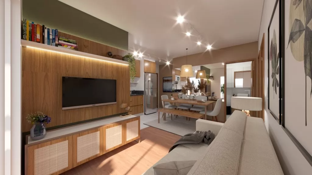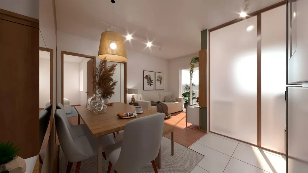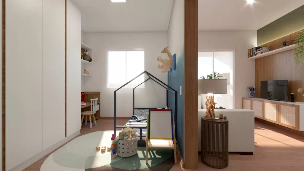 O apartamento pequeno de 55,00m² com dois dormitórios é pequeno, mas do jeito que pensamos coube tudo que os moradores queriam de forma funcional e bonita, sem sobrecarregar o espaço!