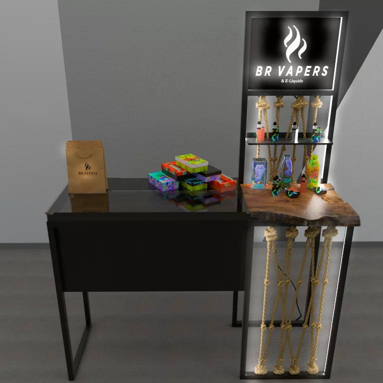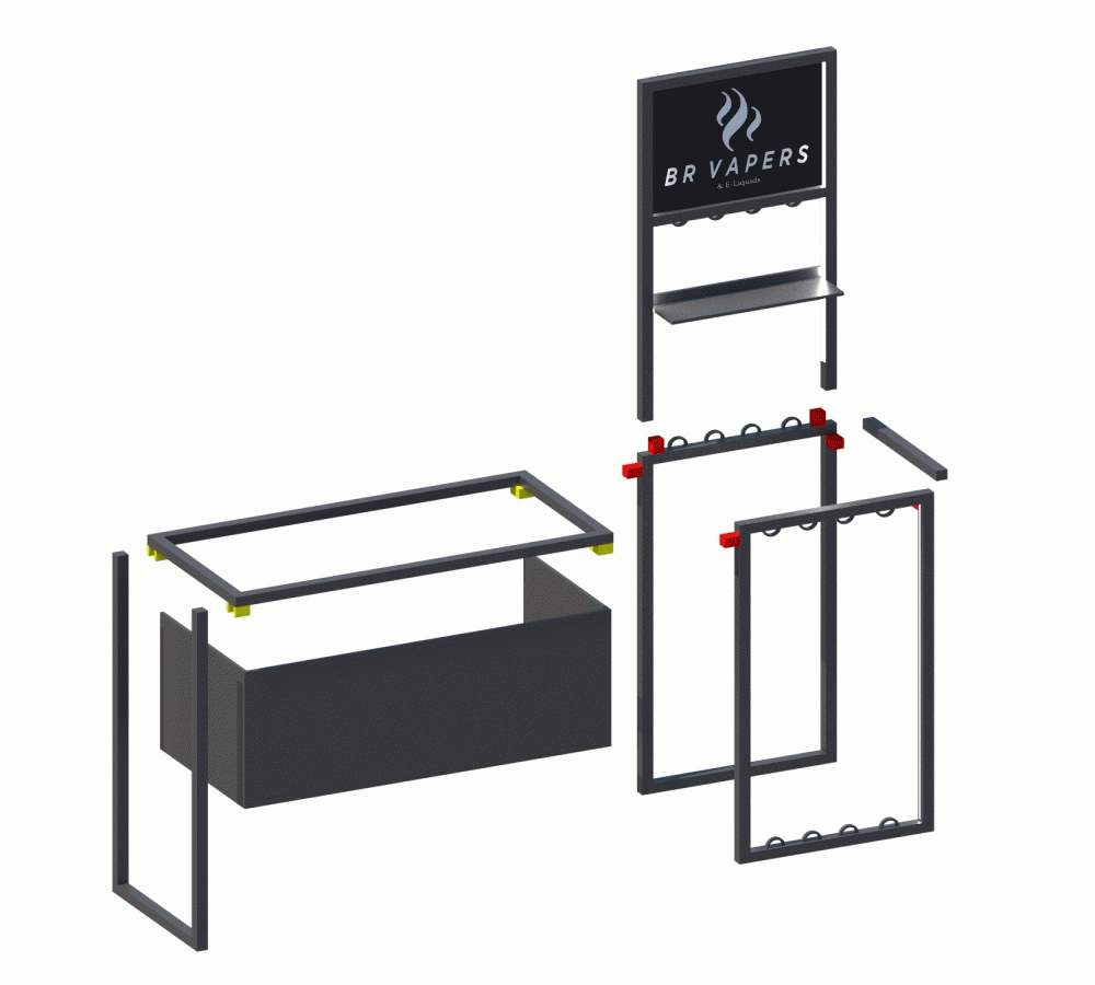Proposta de estande desmontável e de fácil manuseio para exposição de Vaporizadores, BR VAPERS, em eventos. Para isso, utilizamos sistemas de engates fáceis, para que qualquer pessoa pudesse montar e desmontar.