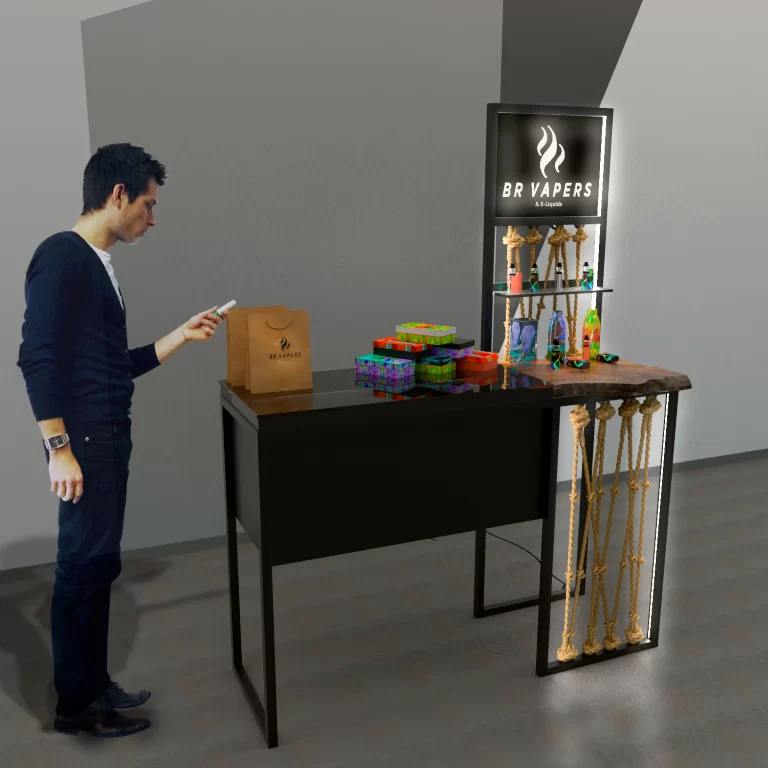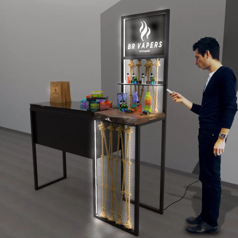 O estande para a empresa BR Vapers precisava ser desmontável e prático para que coubesse em um carro. Industrial atendeu todas expectativas!