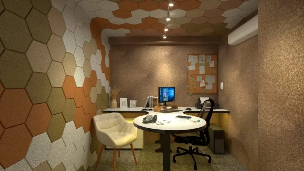 O consultório onde a avalição audiológica é feito, já havia tratamento acústico, porém com uma estética mais antiga. Então deixamos ele mais vivo e iluminado!