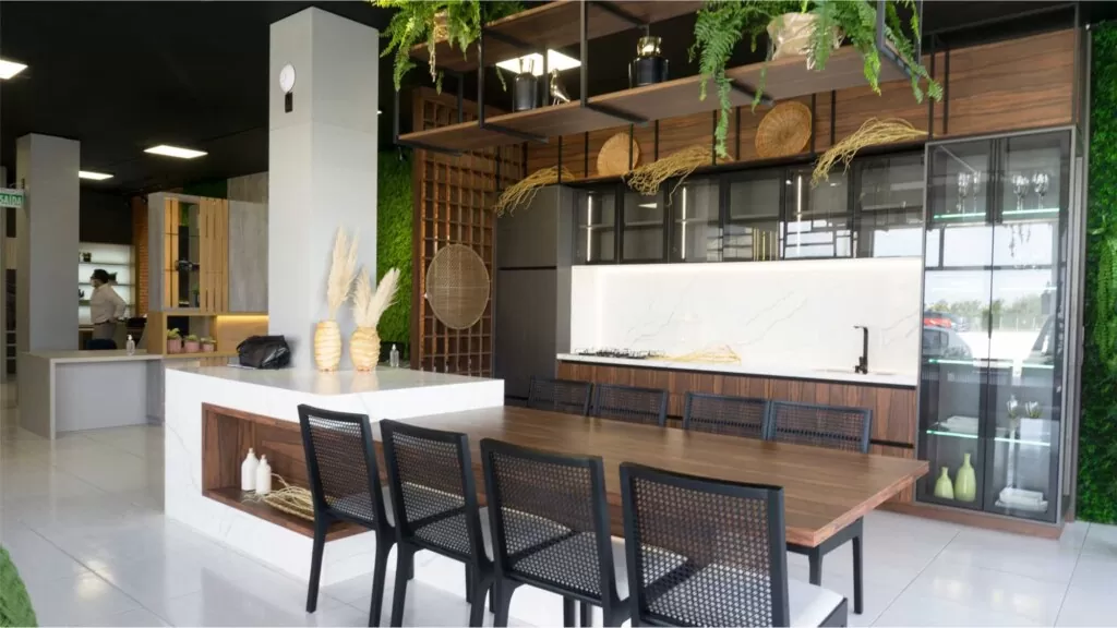 Projeto de Arquitetura Comercial da Loja Vivelle Móveis em Florianópolis, na praia do Campeche. Pensamos em móveis em vários estilos para a vida contemporânea.