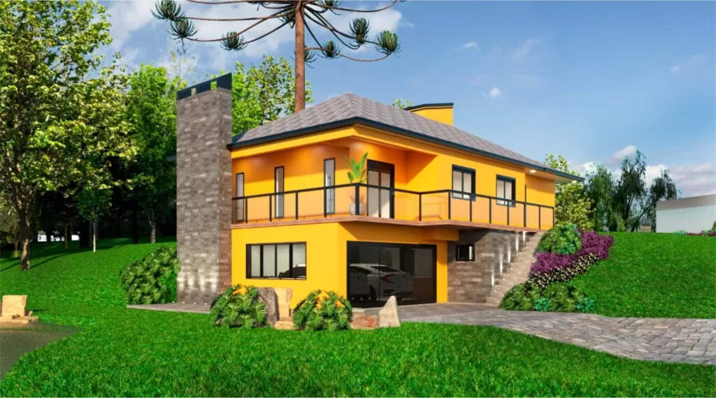 Projeto de arquitetura de casa popular, levou em conta o baixo custo de execução, facilidade de construção, fluxos, setorização, conforto dos moradores e a estética da casa